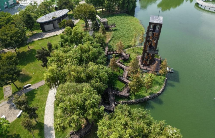 此外,「21.7KM綠空廊道-建構都市帶狀綠色基盤」配合鐵路高架化契機,打造全台最長帶狀自行車道與綠帶空間,透過景觀縫合策略串聯都市節點,兼具通勤、休憩與生態廊道功能,有效改善都市微氣候與步行環境品質;「中央公園綠環境整合計畫-台中國際會展中心+綠美圖」則整合重大地標建築與大片綠帶空間,以「公園中的圖書館、美術館」為設計概念,融合低碳、智慧與創新思維,塑造水湳經貿園區嶄新門戶意象,提升城市整體景觀層次。