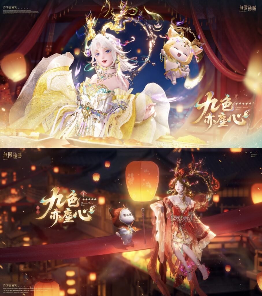 兩套全新五星套裝各自展現了不同的中式美學,「九色亦塵心」以「靈鹿」之意象,呈現輕盈空靈的仙宴