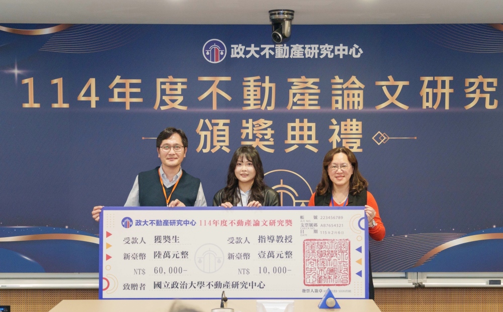政大不動產研究中心表示,未來將持續透過研究獎、論壇與跨界合作,打造結合學術研究、政策思考與產業實務的人才培育平台,讓青年研究者的成果能成為影響市場與制度的知識基礎,持續為台灣不動產領域注入新動能。