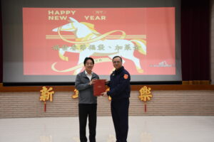 【民眾網編輯方笙楠臺北報導】總統賴清德特別在春節第一天,在內政部長劉世芳、內政部警政署長張榮興、臺北市政府警察局長林炎田陪同下,親赴中正第二分局頒發春節福袋及加菜金,慰勉及感謝警察同仁堅守崗位,在第一線守護國人安全之辛勞。