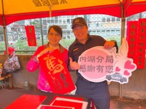 內湖分局表示,新春揮毫象徵辭舊迎新,警方透過走入社區、貼近民眾的方式深化宣導,期盼在歡喜年節氛圍中,將交通安全與防詐騙觀念深植人心,讓市民朋友在新的一年「春到福到、平安也到」,安心迎接嶄新的一年。